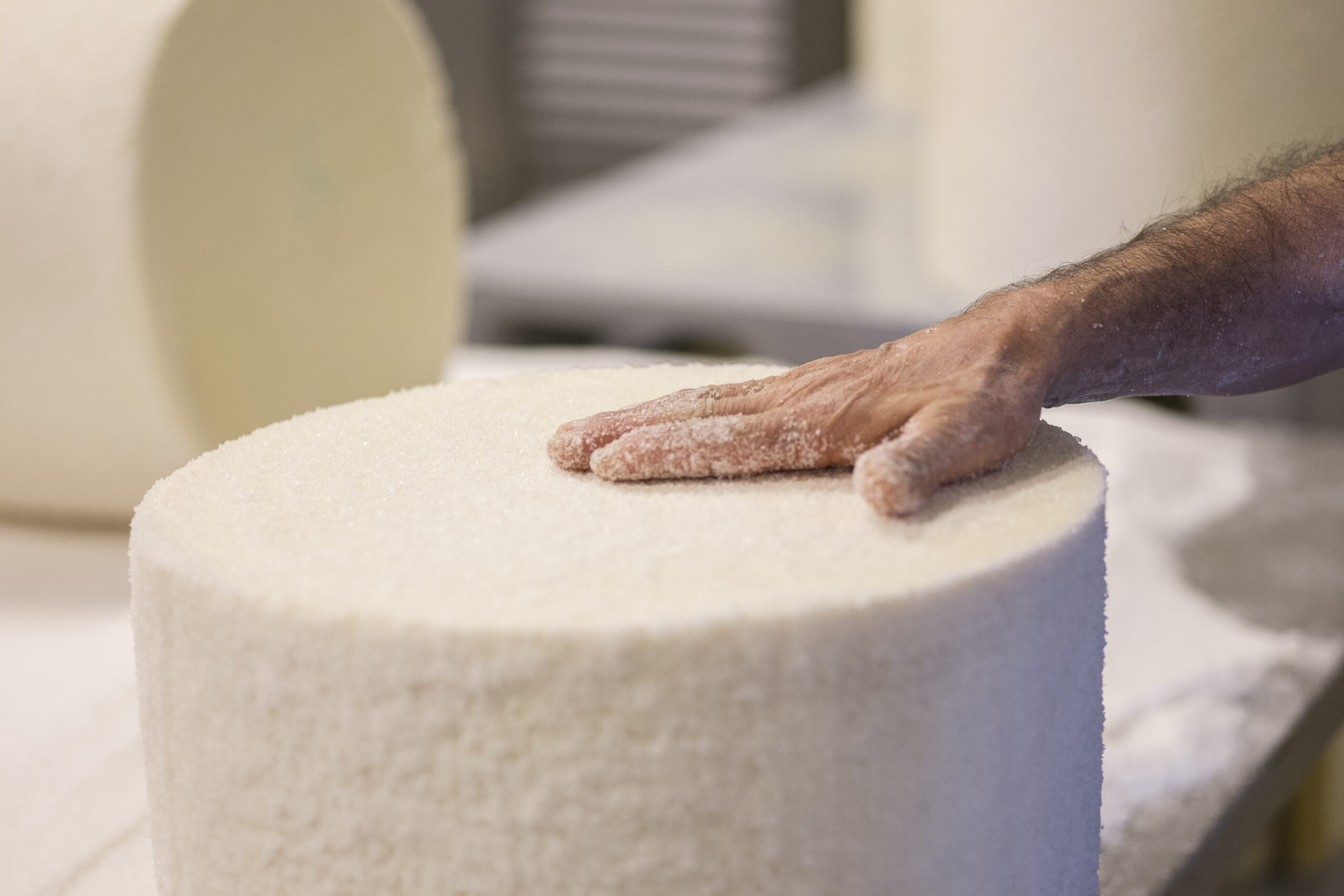 Le forme, dopo essere state controllate manualmente una ad una, vengono poste in ampie celle areate dove stagionano sotto un’attenta supervisione. La stagionatura dura per il tempo necessario a portare il formaggio al raggiungimento del suo massimo potenziale in termini di gusto e integrità. Questa fase, infatti, può durare da qualche giorno a più di due anni.